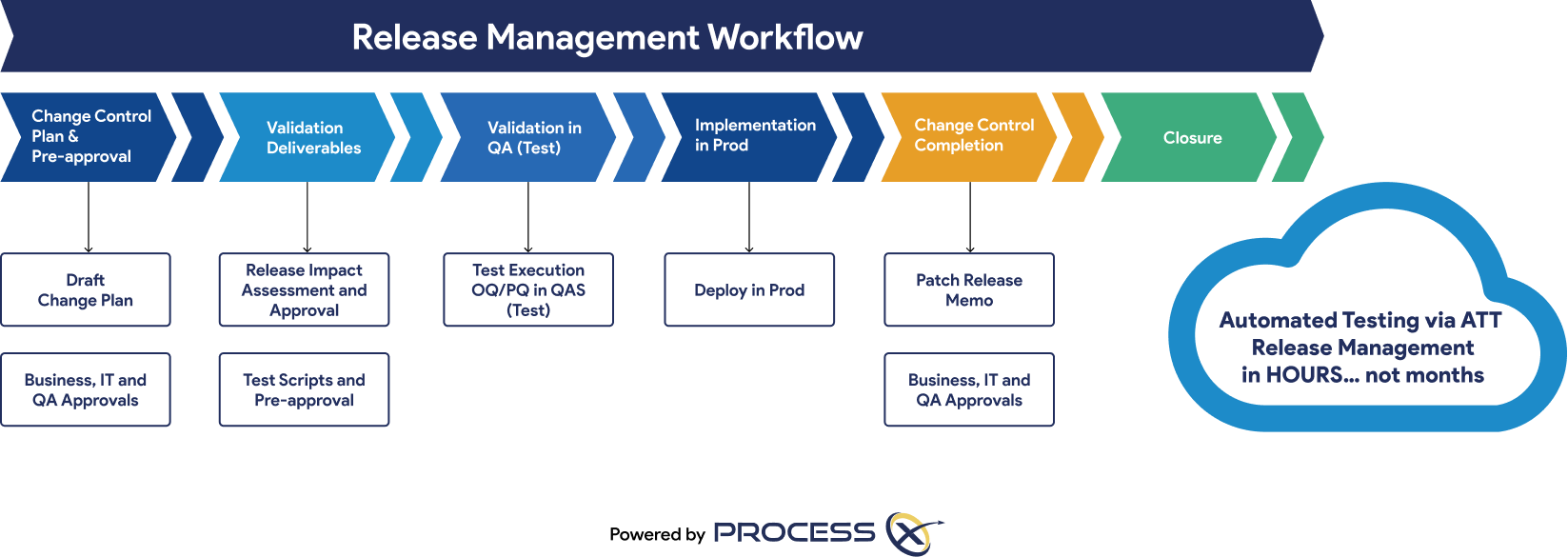 By automating testing, Validation Lifecycle Management (VLM), and Application Lifecycle Management (ALM) in ProcessX, you’re able to: